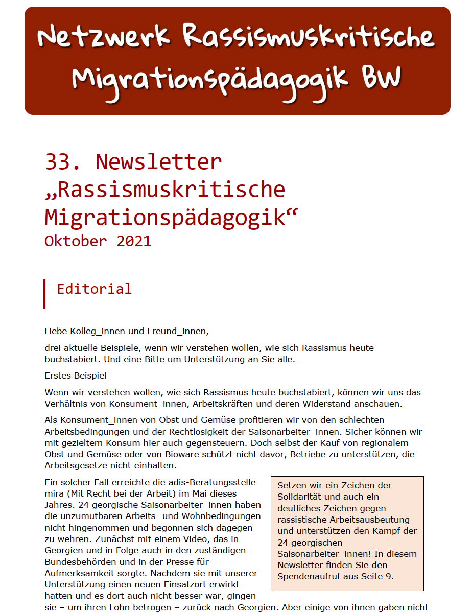 43. Newsletter „Rassismuskritische Migrationspädagogik“